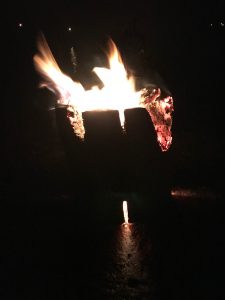 Plötsligt får vi se ficklampssken på Östra Älvsalas sida och marschall efter marschall tänds längs vattnet som ett pärlband!!!