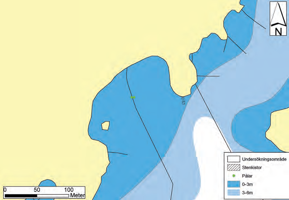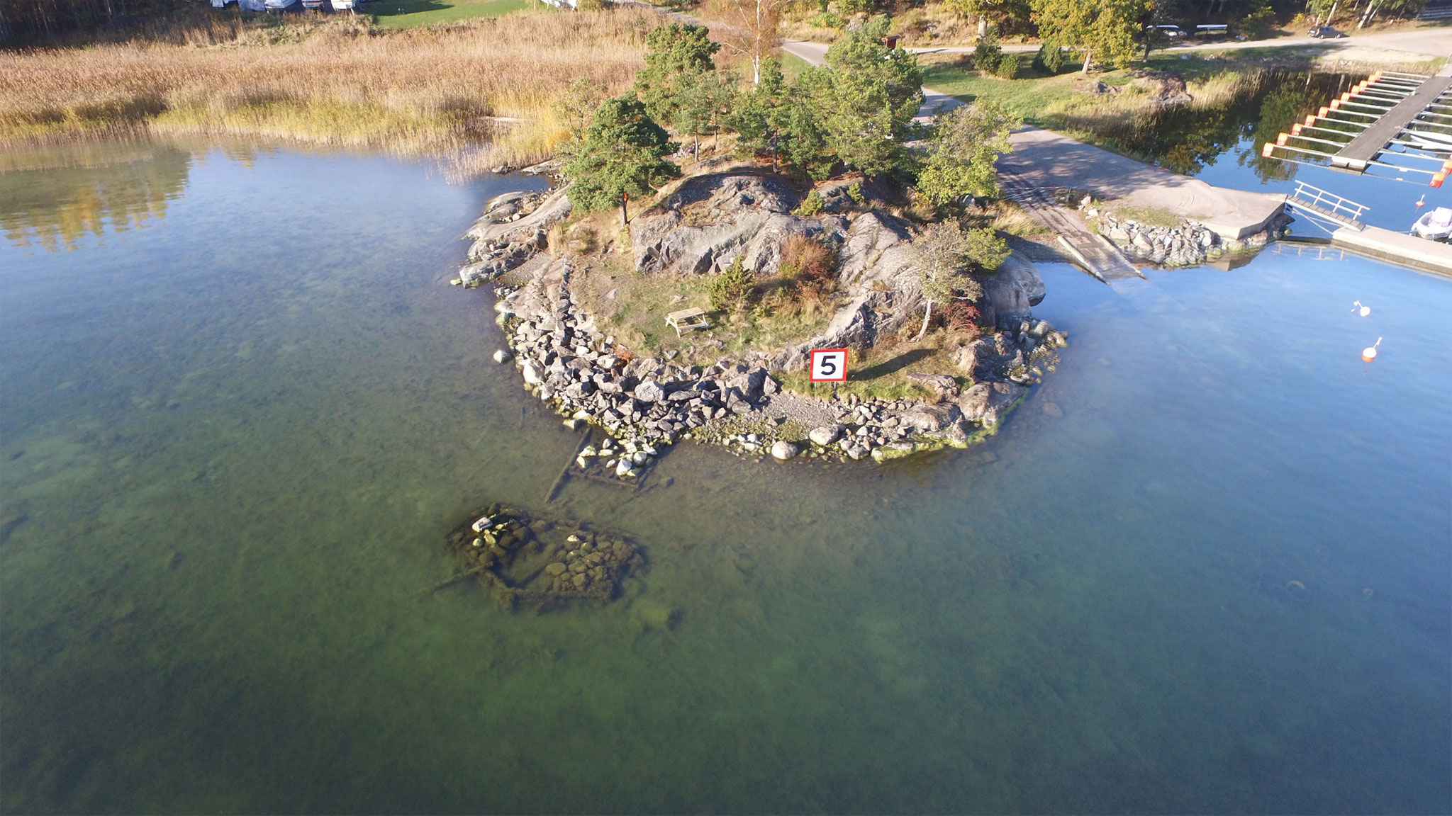 Om vi går tillbaka ännu längre finns det utanför den lilla udden en fast fornlämning, en stenkista daterad till omkring år 1600, där en tidigare brygga låg.
