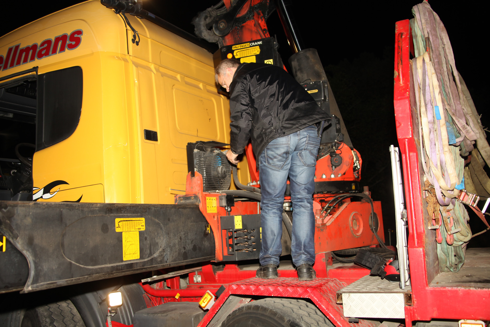 Mats Öberg på Malte Månson fixade biffen! Strax efter midnatt tickade kranbilen igång igen.